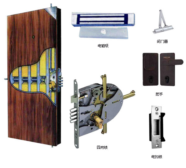4.采用进口高级智能防盗锁、闭门器、电磁吸,也可自由选择各种配件;